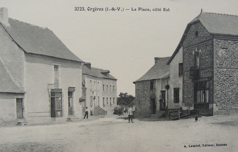 3723. Orgères (I.-&-V.) . La Place, côté Est. Carte postale éditée par A. Lamiré, Editeur, Rennes, [s. d. ] (A.D. Ille-et-Vilaine 6 Fi/16) .