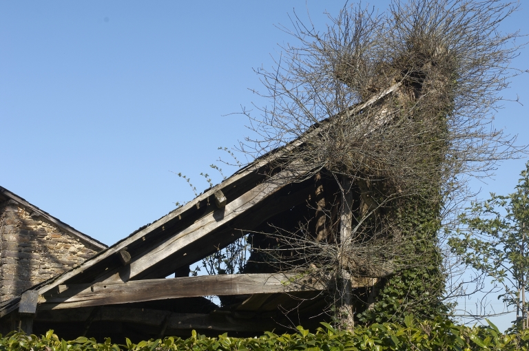 La partie ouest de l'ensemble est élevée en maçonnerie de moellon de schiste, pourpre principalement. Cette partie est couverte d'un toit à longs pans en ardoise, à forte pente et possédant un coyau. Sur la partie est, il existe une ancienne porte en plein cintre.