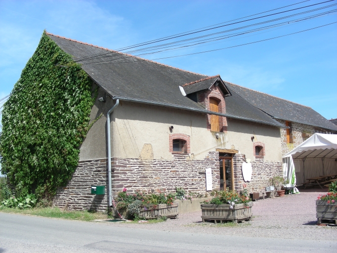 Cette ferme est composée de plusieurs bâtiments implantés autour d'une cour. Le logis occupe le côté est de cette cour ; il est construit en moellon de schiste et couvert d'un toit à longs pans en ardoise. Une porte haute à toiture à croupe permet l'accès au comble. Le côté ouest de la cour est occupé par une ancienne grange et étable. Au contraire du logis, ce bâtiment est élevé en terre sur un solin composé de moellon de schiste pourpre. Au nord de la cour, se trouve également un bâtiment construit en terre sur un haut solin de moellon de schiste. Au sud du chemin d'accès, s'élèvent un four et d'anciennes porcheries, réalisés en maçonnerie de moellon de schiste.