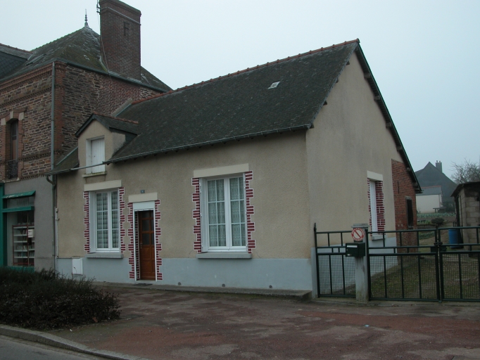 Implantation : à l'aplomb de la rue, sur l'artère principale de la commune. Maison élémentaire en partie mitoyenne avec appentis arrière en brique. Cour. A noter : jardin à l'arrière avec enclos ancien en pierre et en terre. Orientation : est.