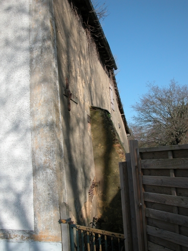 Implantation en bordure de l'axe principal, avec une orientation légèrement décalée sud-ouest. Volume de plan massé recouvert d´une toiture en pavillon. Appentis arrière. Logis adjacents très remaniés ont remplacés un ancien corps de dépendances accolé à la construction principale. A noter : l´enduit semble cacher une construction traditionnelle en terre. A préciser : Etage habitable ou ancien grenier ? .