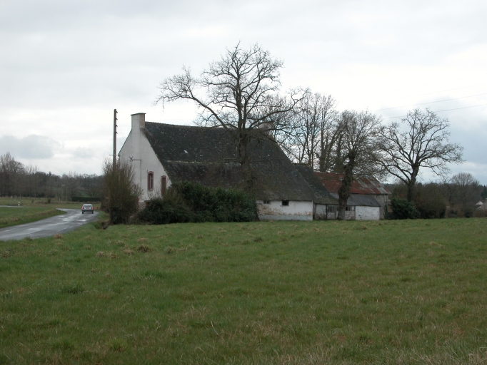 Implantation perpendiculaire à la voie. Orientation sud. Logis et parties agricoles accolées. Logis très transformé avec typologie difficilement lisible aujourd'hui. Double profondeur d'annexes, anciennes étables et cellier ? Mise en oeuvre mixte, schiste et terre recouverte d'un enduit.