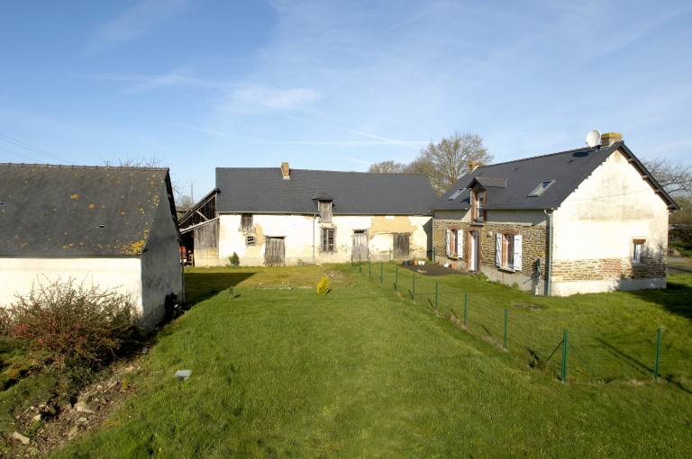 Le premier type est le plus fréquent ; il correspond à des fermes modestes qui abritaient, sous un même toit, une pièce à feu unique faisant office de logis, et une dépendance, le plus souvent une étable ou un cellier. Souvent, en façade, ces logis présentent des portes jumelées, l'une desservant la pièce à feu et l'autre la dépendance. Il existe des logis de ferme de ce type à Douazel, au Perray ou au Plessis par exemple.