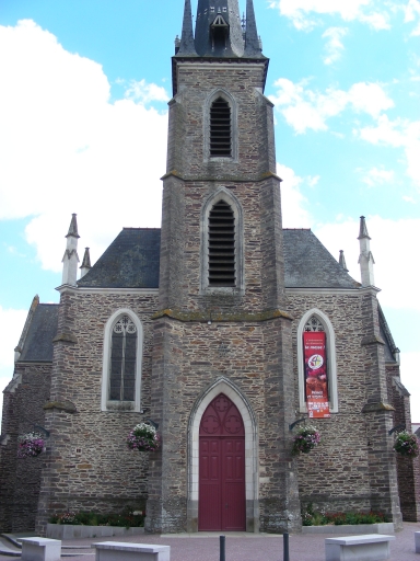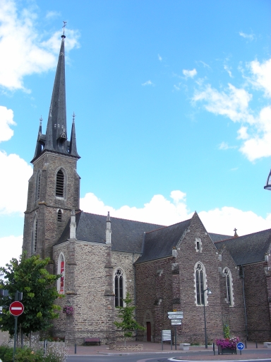 Le gros-oeuvre de ce bâtiment est réalisé en moellon de schiste pourpre ; les encadrements de baies sont, quant à eux, réalisés en pierre calcaire. Cette église possède un plan en croix latine, l'extrémité ouest de la nef est surmontée d'un clocher-porche. Le chevet plat est de style néo-gothique, de même que les voûtes sur croisées d'ogives situées à l'intérieur de l'édifice. Sur le mur Est de l'édifice, une plaque témoigne de l'inscription suivante : "Bénite par Monsieur le Chanoine HEVIN/ Curé Doyen de Saint-Sauveur de Rennes/délégué par Monseigneur l'Archevêque/11 juill.1909.".