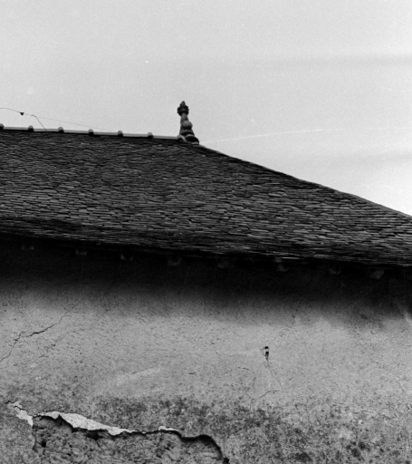 Ce bâtiment a été très fortement remanié ; toutefois, une photographie de 1974 nous permet de connaître un état proche de son état d'origine. Contrairement à aujourd'hui, à l'origine, ce bâtiment était donc composé d'une pièce à feu centrale au rez-de-chaussée. Cette pièce à feu était éclairée par une fenêtre grillée et l'accès se faisait par une porte située au centre de la façade environ. Les parties latérales du bâtiment abritaient vraisemblablement des dépendances. Le bâtiment conserve un épi de faîtage intéressant à l'est. Il est réalisé en terre cuite et est à rapprocher de ceux qui se trouvent sur les toitures du manoir de la Salle.