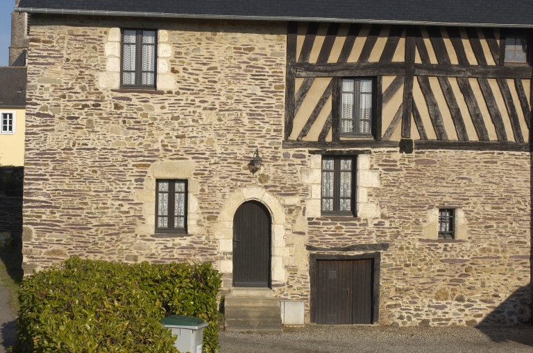 Ce bâtiment est élevé en moellon de schiste pourpre en ce qui concerne la majeure partie de la construction ; toutefois, la partie supérieure de la façade sud est réalisée en pan de bois (bois et torchis). Le toit à longs pans est couvert d'ardoise et possède une très forte pente. Les baies d'origine présentent des encadrements en pierre calcaire ; la porte est en plein cintre et les encadrements de fenêtres sont chanfreinés. Face au bâtiment principal, s'élève un bâtiment construit en bauge. Les encadrements des baies de ce bâtiment sont des carrées bois.