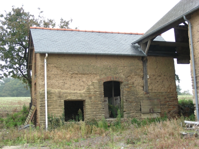 Les bâtiments qui composent cette ancienne ferme sont construits en bauge sur un solin plus ou moins haut en moellon de schiste. Le logis possède une cave ; il est par ailleurs composé de deux pièces à feu au rez-de-chaussée. Le comble à haut surcroît est accessible grâce à deux portes hautes pendantes à toitures à croupes. La façade de ce bâtiment est couverte d'un enduit ; le toit à longs pans est couvert d'ardoise et possède un léger coyau. Une corniche composée de corbelets en bois se trouve sous la toiture. Une ancienne étable se situe au sud-est de la cour ; elle est accolée au nord d'une remise. Les encadrements de baies de ce bâtiment sont composés de brique et les linteaux sont en béton. Enfin, des porcheries se situent au nord-est de la cour de la ferme ; les encadrements de baies sont réalisés en brique.