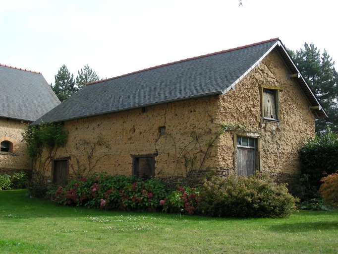 Cette ancienne ferme est composée de trois bâtiments qui forment un "U". L'ancien logis se trouve au nord ; il est construit en moellon de schiste pourpre et en terre enduite. Les toitures à longs pans sont couvertes d'ardoise. A l'arrière du logis, se trouve un appentis postérieur. A l'est de la cour, se situe l'ancienne étable, construite en bauge sur un solin composé de moellon de schiste pourpre. Le toit à longs pans est couvert d'ardoise ; une porte haute pendante permet l'accès au comble à surcroît. Les encadrements des baies de ce bâtiment sont réalisés en brique. Enfin, au sud, se trouvent les anciennes écuries, également construites en terre sur un solin de moellon de schiste pourpre. Les encadrements de baies sont composés de carrées de bois. Au sud-ouest, il existe par ailleurs un puits en schiste pourpre.