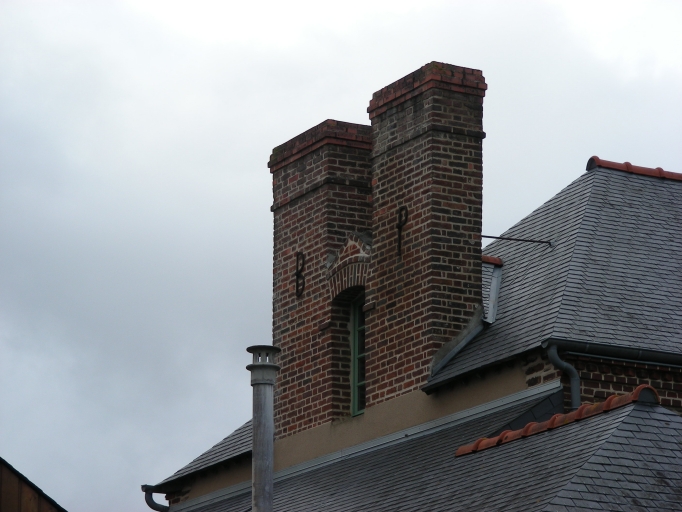 La construction de cette maison date de 1883, cette date était portée au-dessus de la porte d'entrée. Une photographie du bâtiment, prise en 1974, lors d'un pré-inventaire du patrimoine de la commune en témoigne. Les initiales B. P. se trouvaient au-dessus de cette date ; il s'agit probablement des initiales du commanditaire de la construction. De plus, ces initiales se retrouvent également sur les ancres des souches de cheminée de l'est. En 1843, lors de la réalisation du cadastre, cette zone du village était complètement vierge de toute construction. Ce bâtiment possède des caractéristiques architecturales propres aux constructions de la fin du 19e siècle : façade à trois travées, encadrements de baies, bandeaux, chaînages d'angles, corniche en brique, toiture à croupes.