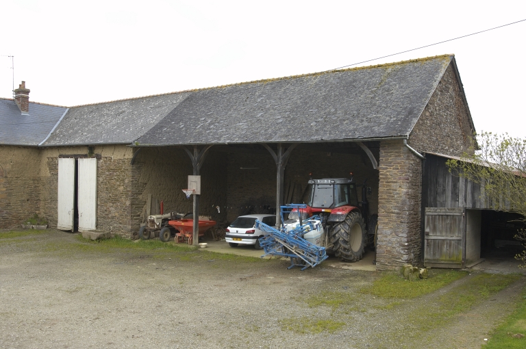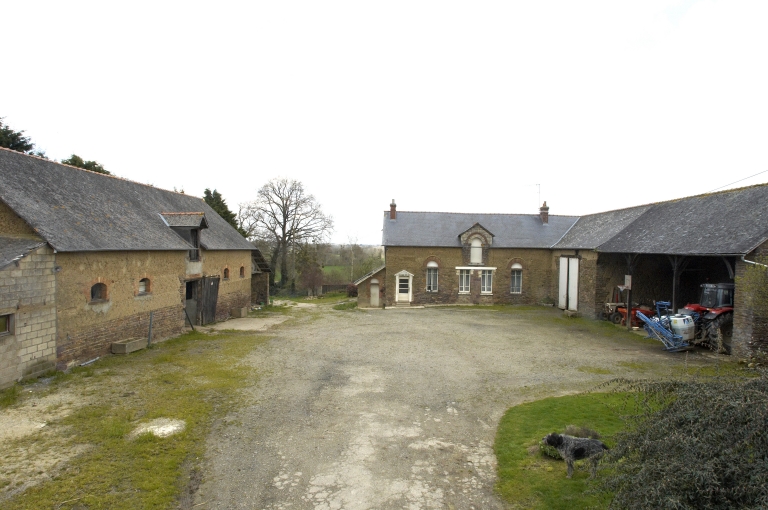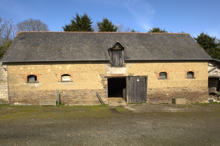 Cette ferme est composée de plusieurs bâtiments distincts, qui forment un "U" autour d'une cour. Le logis se trouve au nord de la cour ; il présente une maçonnerie composée de moellon de schiste pourpre principalement. La partie supérieure des murs est élevée en bauge et la porte haute pendante centrale est réalisée en pierre calcaire. La porte haute pendante possède une forme en plein cintre ; les deux fenêtres sont également surmontées d'arcs en plein cintre en brique. A l'est de la cour, une grange et une remise sont accolées au bâtiment abritant le logis. Ces deux éléments sont également construits en moellon de schiste et en terre. Il existe un puits au sud-est. Au nord-ouest de la cour, se trouvent des porcheries. Une étable se situe sur le côté ouest de la cour. Elle est construite majoritairement en bauge sur un solin composé de moellon de schiste pourpre. Les encadrements de baies sont réalisés en brique. Enfin, au sud-ouest de la cour, se trouve un ancien fournil également élevé en bauge sur un solin de moellon de schiste.