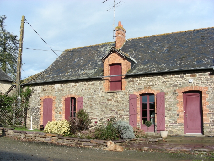 Cette ferme est composée de trois bâtiments principaux ainsi que d'un four et d'un puits. Au nord de la cour, s'élève le bâtiment abritant le logis. Celui-ci est construit en maçonnerie de moellon de schiste ; la toiture à longs pans est couverte d'ardoise et la partie ouest possède une pente relativement forte ainsi qu'un coyau. Les encadrements de baies sont réalisés en brique. Au sud de la cour, se trouve la grange. Elle est construite en moellon de schiste et en terre, en ce qui concerne la partie supérieure des murs. Le toit est couvert de tuile mécanique. Enfin, à l'ouest de la cour se situe l'ancienne étable, construite en terre sur un solin de moellon de schiste. Les baies présentent également des encadrements de brique. A l'intérieur de l'étable, les poutres sont composées de bois assemblés en trait de Jupiter (elles ne sont pas d'un seul tenant).