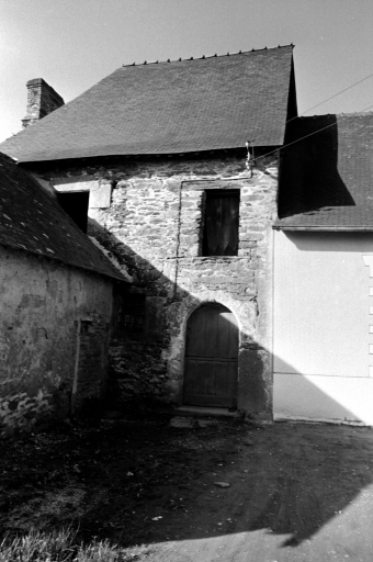 La maçonnerie est en schiste violet en petit appareil irrégulier. Les ouvertures sont en schiste et bois. La fenêtre est à piédroits monolithiques, et comporte une grille de fer forgé. La façade est notamment percée de deux portes en plein cintre aux bords chanfreinés. L'appentis est construit en terre.