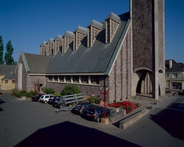 L'ancienne église datait principalement du 16e siècle, elle comprenait une nef à chevet droit et un transept ainsi qu'une tour carrée devant le pignon ouest. A partir de celle-ci, avait été construit de 1877 à 1884 un nouvel édifice suivant les plans de l'architecte Crespel (date et attribution par travaux historiques). Bombardé lors de la dernière guerre, il a été remplacé par l'église actuelle construite par l'architecte Louis Chouinard. Il fera la connaissance de l'abbé Roulin, recteur de Bruz qui lui explique comment il voit la nouvelle église : une église claire, du volume d'une chapelle bretonne où l'on puisse prier en paix, sans caractère ostentatoire ni gigantisme. Les travaux commencèrent en 1951 et furent achevés en 1953. La consécration de l'église eut lieu le 30 mars 1954 par le cardinal Roques.