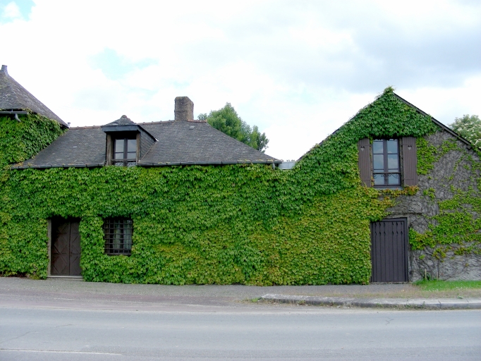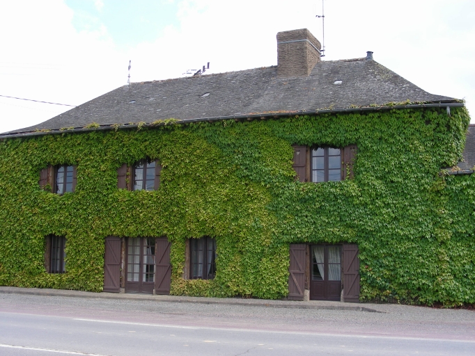 Maison construite en moellon de schiste. Les ouvertures ont des carrées en bois. Le toit couvert d'ardoise est à croupes et est orné d'un épi de faîtage en métal avec une girouette et un coq. Le logis a un appentis latéral.