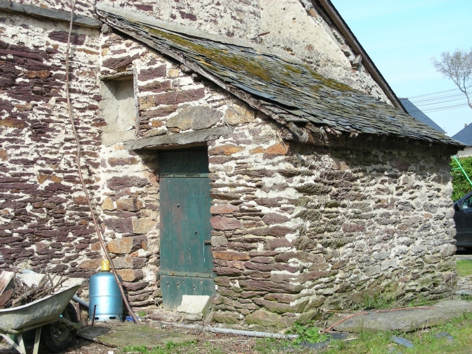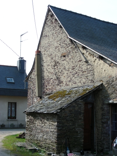Maison construite en moellon de schiste. L'encadrement de la porte est en gros appareil irrégulier de granite, tandis que les fenêtres ont été remaniées. Au-dessus de la porte, une date est gravée dans une pierre de calcaire, il s'agit de 1661. La forte pente du toit couvert d'ardoise est brisée par un coyau. Un appentis postérieur abrite un cellier, tandis que l'appentis latéral est une soue à cochons. Il y a également un puits.