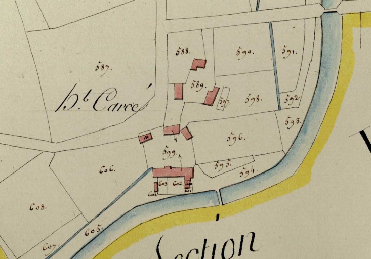 L'écart de Carcé a conservé la structure qu'il avait lors de la levée du cadastre ancien en 1812. Le site de Carcé comporte un manoir, une ferme sur la rive droite de la Seiche, un ancien moulin sur la rive gauche. Le moulin est devenu clinique privée.