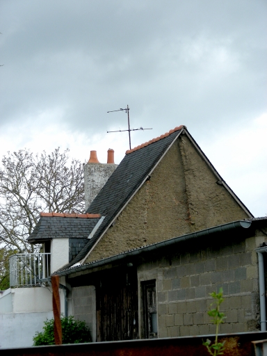 La maçonnerie de cette maison est recouverte d'un enduit, seule la tête du pignon visible présente une élévation en terre. Le toit est très pentu et présente une croupe sur un côté.