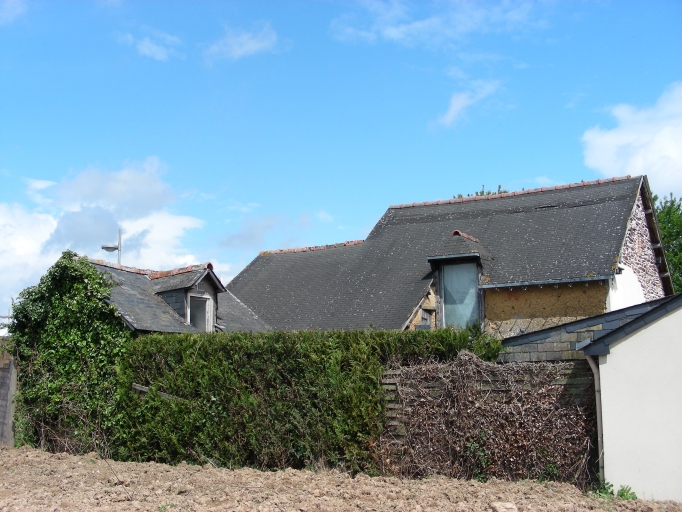 Maison construite en terre selon la technique de la bauge et en moellon de schiste au niveau du pignon. Elle a un appentis antérieur et une dépendance en retour d'angle formant un L.