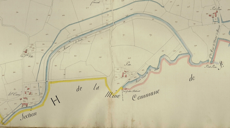 Bruz. Section D de la Chaussairie en 2 feuilles, 2e feuille Par Mrs Vauquetin et Villartay (1812), échelle 1/2500e (A. D. Ille-et-Vilaine).