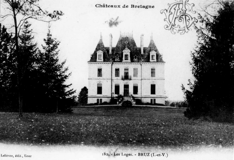 Dans son ouvrage, Paul Banéat retrace la chronologie des différents propriétaires du château des Loges. Il relevait de la juridiction des régaires de l'évêché et appartenait aux Bréhart en 1427. Puis il fut propriété des Rallier sieurs de Pierrefitte en 1655 et des Michau, sieurs de Montaran, de 1667 à 1714 . Ce sont ces derniers qui réédifièrent le manoir d'origine en 1680 et qui y joignirent en 1691 une chapelle et une fuie octogonale à toit plat surmonté d'un clocheton. L'ancien manoir s'élevait entre la chapelle et la fuie. En 1767, le château fut acheté par les Du Boisbaudry, qui le revendirent la même année aux Léon des Ormeaux. Suite à l'émigration de ses propriétaires, le domaine des Loges fit partie des Biens Nationaux. En 1808, M. Joseph Drouet de Montgermont, élu maire de Bruz, s'installa au château des Loges où il vécut jusqu'à son décès en 1823. Il fut acheté par M. Gourdon vers 1925 et resta dans la propriété de sa famille jusqu'à la fin des années 1960. En 1972, le domaine fut partagé : le château, le parc et la chapelle furent acquis par une banque qui les a revendus depuis. On accède aujourd'hui au logis, construit en 1871, par deux allées nobles. L'élévation régulière et symétrique, le plan ternaire ainsi que la sobriété du vocabulaire architectural sont caractéristiques de la fin du 19e siècle.