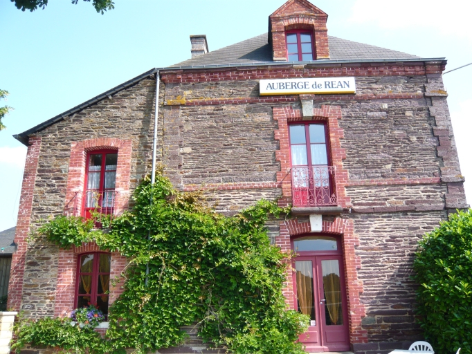 L'auberge de Réan se situe au pied du pont, au tout début de la rue de Redon. Elle se compose de trois corps de bâtiments de type ternaire, alignés sur la rue. Les toits à croupes sont couverts d'ardoise. La maçonnerie est en moellon de schiste violet. Les encadrements des ouvertures, les frises, la corniche et les éléments de décoration sont en brique. Le solin, le chaînage d'angle ainsi que les bandeaux du bâtiment sud sont appareillés en pierre de taille de schiste pourpre. Le linteau des ouvertures est légèrement cintré et couronné d'une clef en calcaire, à l'exception de la fenêtre du rez-de-chaussée située à droite de la porte. Le corps principal est prolongé d'un appentis postérieur et coiffé d'une souche de cheminée en brique sur le mur gouttereau postérieur. Le rez-de-chaussée surélevé indique la présence d'une cave. L'élévation comprend un étage et un comble à haut-surcroît, pourvu de quatre lucarnes. Le corps central s'élève également sur un rez-de-chaussée surélevé. Son solin est enduit et les linteaux droits des ouvertures sont en ciment moulé. Deux souches de cheminée en brique portent des ancres en forme de S. Le solin du bâtiment nord est en pierre de taille de schiste violet revêtu d'un enduit. Les encadrements, les bandeaux et les chaînages d'angle sont en brique, de même que les éléments de décors : motifs en forme de croix sur les murs et imitation d'une balustrade sous l'appui des fenêtres au premier niveau. Les linteaux sont légèrement cintrés et ornés de clefs et de claveaux en calcaire, les appuis des fenêtres sont en béton enduit. Le toit est surmonté d'un épi de faîtage en zinc. La souche de cheminée en brique comporte une ancre en forme de H. Elle est placée sur le mur pignon sur lequel se distingue le conduit en brique.