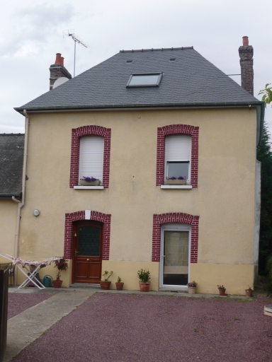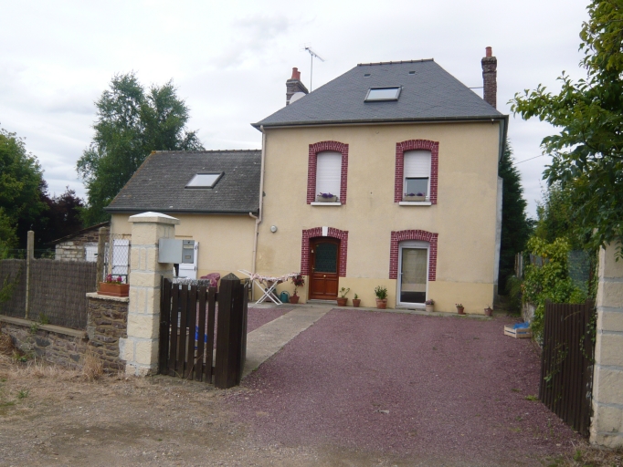 Cette maison comprend un rez-de-chaussée, un étage carré et un comble. Un corps de bâtiment en appentis latéral la prolonge à l'ouest. Elle est couverte d'un toit en pavillon en ardoise. Les deux souches de cheminée en brique sont placées sur chacun des murs pignons. Son élévation à deux travées est ordonnancée. La façade est enduite. Les encadrements des ouvertures sont en brique, avec des linteaux légèrement cintrés et des appuis saillants en béton. La clef du linteau de l'entrée principale est peinte en blanc.