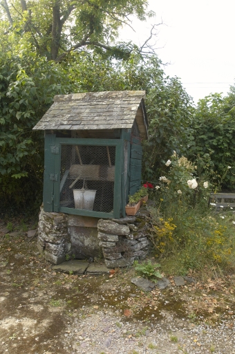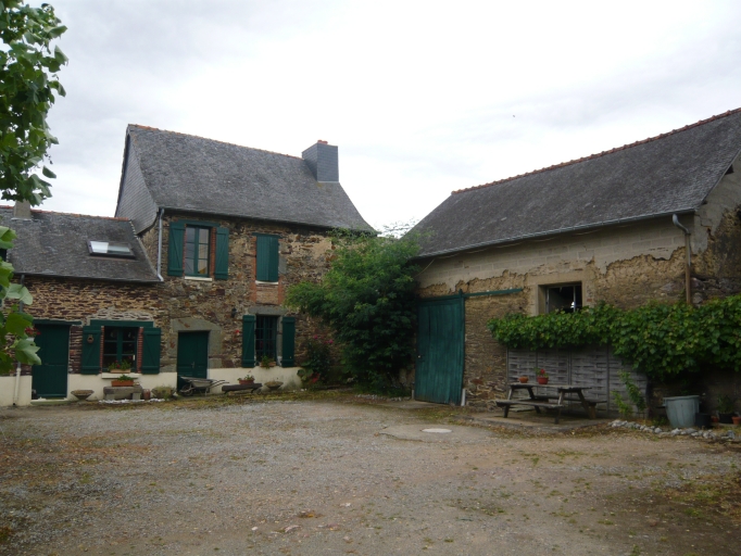 Cet ensemble se compose de deux bâtiments disposés en L autour d'une cour. Le bâtiment principal comprend un rez-de-chaussée, un étage carré et un comble. Il est couvert d'un toit à deux versants en ardoise marqué par une forte pente et un coyau important. La souche de cheminée recouverte d'ardoise est placée sur le mur pignon est. La maçonnerie est en moellon de schiste sur un solin enduit. Les ouvertures de ce bâtiment ont été remaniées et sont hétérogènes : encadrement en gros appareil de schiste irrégulier et chanfreiné avec un linteau droit au rez-de-chaussée, encadrements de brique avec des linteaux droits en bois et des appuis saillants en béton peint au premier niveau. Ce premier bâtiment est accolé à une dépendance qui comporte un niveau et un comble à surcroît percé d'une porte haute pendante couverte par un toit à deux versants. Elle est prolongée par un cellier placé en appentis postérieur. Elle est également construite en moellon de schiste sur un solin enduit. Elle est couverte d'un toit à deux versants en ardoise. La cheminée est placée sur un mur de refend. Un linteau filant en bois regroupe trois ouvertures. La quatrième est encadrée de brique avec un linteau droit et un appui saillant en béton. La gerbière est encadrée d'une carrée de bois. Une grange disposée perpendiculairement au premier bâtiment ferme la cour à l'ouest. Elle est construite en terre sur un solin de moellon de schiste et couverte d'un toit à deux versants en ardoise. Un puits situé au sud de la cour complète les dépendances.