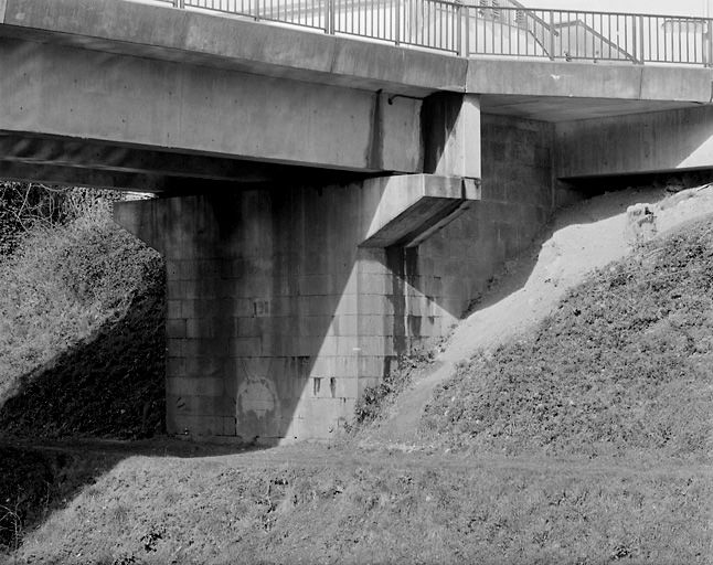Pont à une arche ; culées : pierre de taille de granite ; tablier : béton, garde-corps métallique.