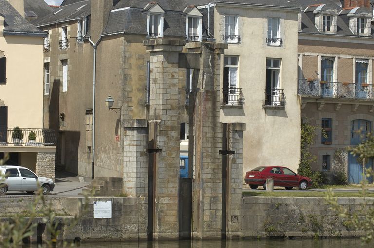 Écluse d'isolement ; pont basculant ; écluse marine ; bassin. Grand Vannage sur la Vilaine : écluse marine à trois travées ; culées & piles à becs triangulaires : pierre de taille de granite ; vannes et passerelles métalliques. État actuel : seule subsiste la culée sur la rive droite.