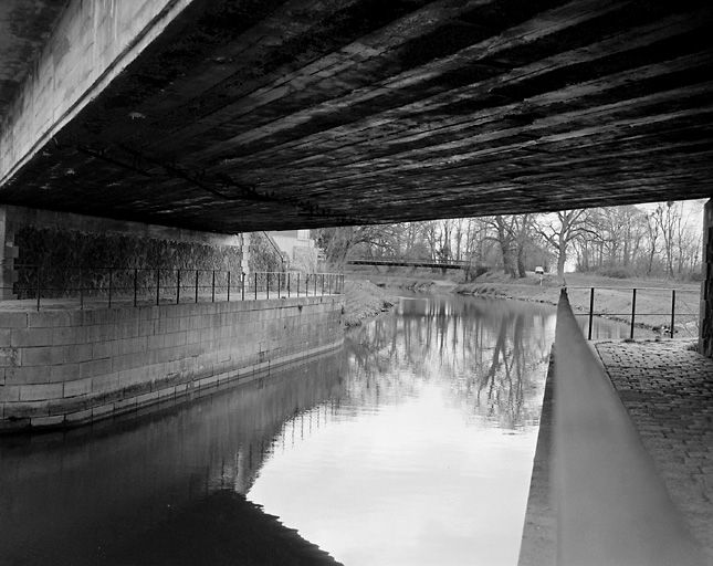 Pont sur la dérivation et les chemins de halage et de contre-halage ; une arche ; culées : moellons polygonaux de schiste, chaînes d'angle harpées et mur de quai soutenant le chemin : pierre de taille de granite ; tablier : voûtains. État actuel : les pierres de taille des chaînes d'angle portent la trace des cordages.
