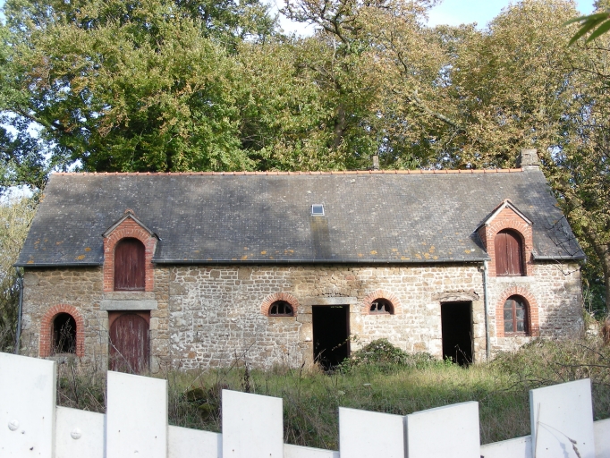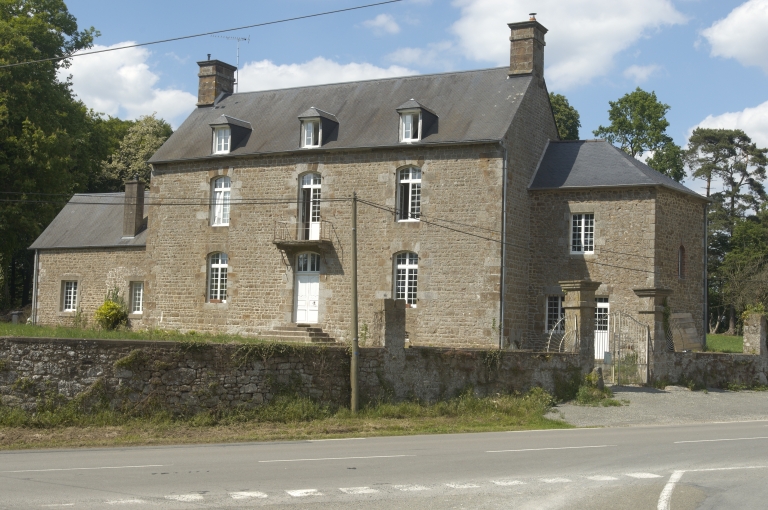Ce bâtiment est élevé en moellon de granite et couvert d'un toit à longs pans en ardoise. La partie Est est couverte d'un toit à croupe. Les encadrements de baies, chaînages d'angles, souches de cheminées... sont traités en pierre de taille de granite. La façade est rythmée par trois travées, les baies présentent des encadrements en arcs segmentaires composés de claveaux. Trois lucarnes à la capucine éclairent le comble. Les parties latérales est et ouest possèdent des baies à encadrements quadrangulaires en granite. Au sud-ouest, se trouve un bâtiment de dépendances construit en moellon de granite, couvert en ardoise et dont les encadrements de baies, en plein cintre, sont réalisés en brique.