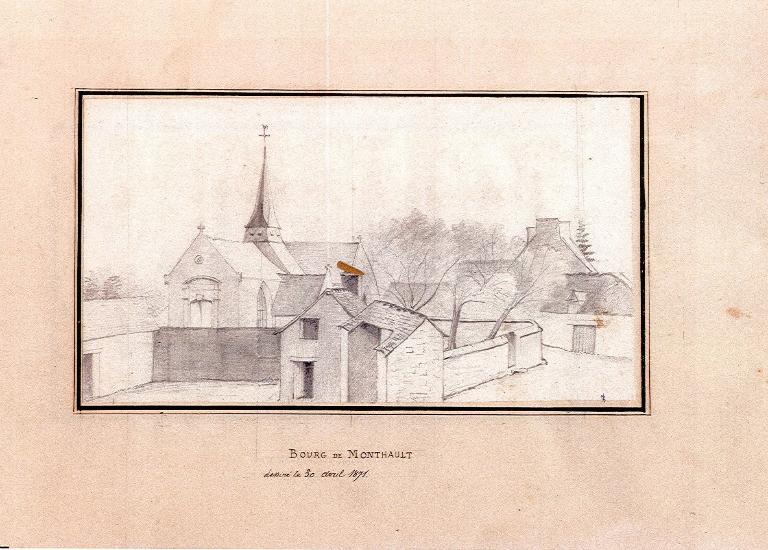 A. D. Ille-et-Vilaine. Série O : Administration et comptabilité communales. Edifices publics. Monuments et établissements publics. Monthault. Presbytère ; restauration : extraits des délibérations, rapports, correspondances, notes (1858-1866, 1935) : 2 O 191/11.