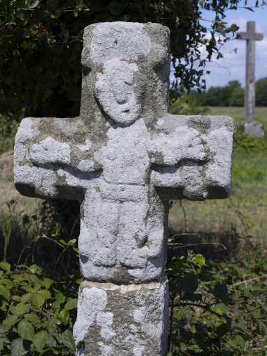 On trouve différents types de croix, qui se différencient plus par leur implantation que par leurs différences esthétiques. Ainsi, en trouve-t-on le long des chemins, dans les cimetières ou bien sur des espaces publics. Parmi les croix de chemin, on peut différencier les croix de mission, les croix de pèlerinage ou les croix commémoratives, différences qui se révèlent au niveau stylistique. Les croix de pèlerinage sont les plus anciennes, elles bornaient les chemins de pèlerinage, ici du Mont Saint-Michel, toutefois, peu d'entre elles nous sont parvenues. Au 19e siècle, on voit également fleurir des croix marquant les étapes des processions. Les plus nombreuses sont les croix commémoratives. Elles sont érigées en remerciement du bon déroulement d'un événement quelconque, qui peut toucher à la communauté entière ou bien à une famille. Il est donc fréquent de voir des familles dresser une croix après la réussite d'un projet, tel que la construction sans problème d'une maison. C'est parfois aussi une preuve de foi adressée à toute la communauté. La communauté entière peut faire ériger une croix en souvenir d'un événement ayant marqué l'ensemble de la population, il peut en être ainsi après une épidémie ou un fait de guerre ou bien une mission. Les croix sont le plus souvent implantées à des carrefours, parfois à proximité des habitations pour les croix "familiales" ou isolées le long des chemins, sur un talus. On a pu observer une grande variété de styles. Jusqu'au 19e siècle, les croix sont uniques et possèdent des particularités qui leur sont propres. Toutefois, on a pu remarquer que la base de la croix, au 17e siècle, est souvent sculptée d'un quart de sphère dans les angles supérieurs. Le fût est le plus souvent carré, mais chanfreiné au 17e siècle. Les bases portent de manière quasi systématique une dédicace et une date. La dédicace est souvent composée du nom du commanditaire et du nom du lieu. Les bras de la croix sont parfois ouvragés au 19e siècle, trilobés ou dotés d'une boule à chaque extrémité. La croix porte également parfois un christ. Il est représenté de manière très simple jusqu'au 19e siècle, les artisans n'étant probablement pas de sculpteurs mais plutôt de tailleurs de pierre. Le visage est oval, doté de simples traits pour figurer les yeux, le nez et la bouche. La tête penche légèrement sur un côté. Au 19e siècle, les christs ne sont plus sculptés mais simplement fixés à la croix, ils sont souvent d'un autre matériau que la pierre. Il était fréquent de voir une petite niche creusée dans le fût, mais aujourd'hui, les statuettes qu'elles abritaient ont le plus souvent disparu.