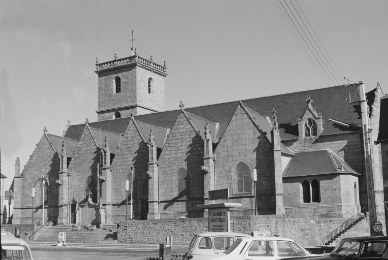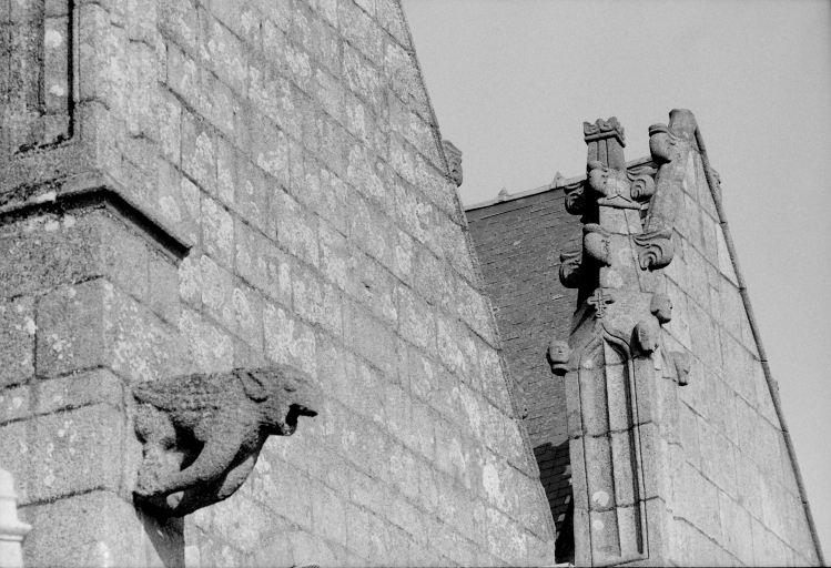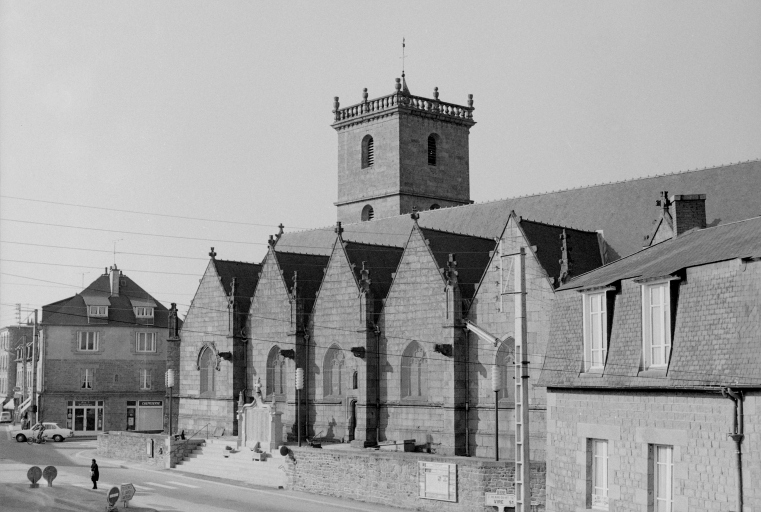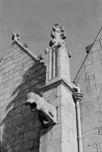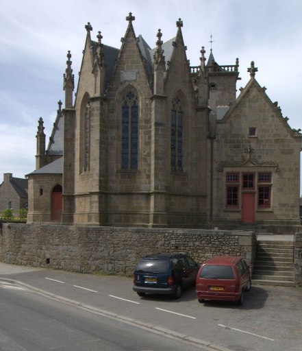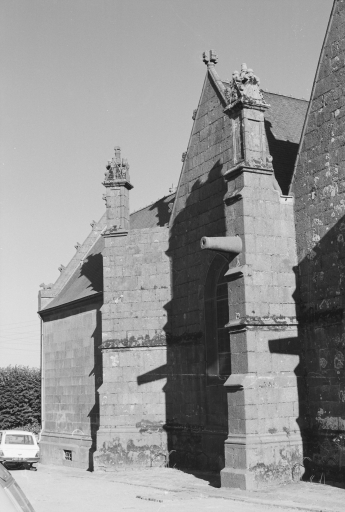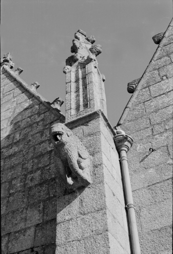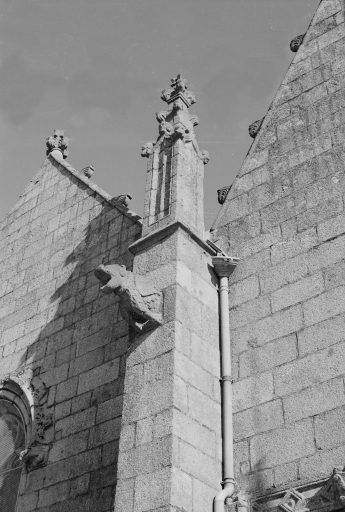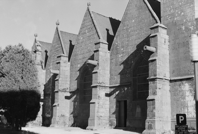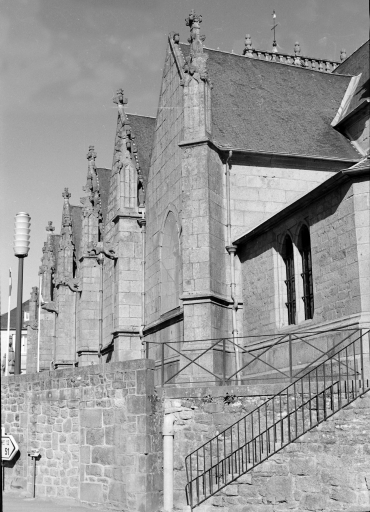 Typologiesclocher latéral ; à pignons multiples ; chevet Beaumanoir: chevet à pans coupés et à pignons multiples. Style gothique flamboyant