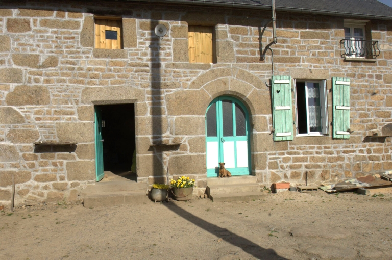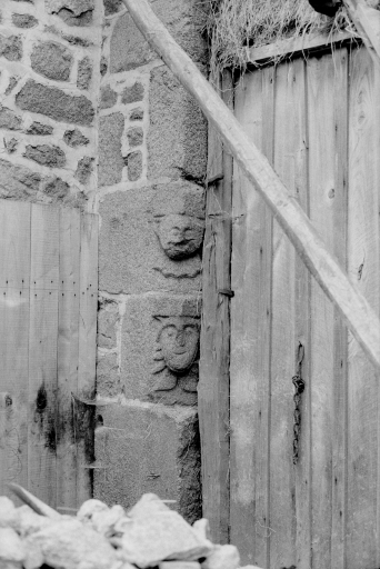 La ferme 1 est construite en moellon et en moyen appareil régulier de granite et est couverte en ardoise. Sa façade est est percée de deux portes et d'une fenêtre au rez-de-chaussée, ainsi que de deux fenêtres à l'étage. La porte permettant l'accès à la salle principale est une porte en plein cintre, l'autre porte donnant accès à une petite pièce de dépendance a un linteau droit. Toutes les ouvertures ont des bords chanfreinés. La cheminée du rez-de-chaussée présente un beau décor sculpté sur les piédroits : une tête joufflue d'un côté et une sorte de calice de l'autre. Cette ferme fut vraisemblablement construite au cours du 17e siècle. La ferme 2 est composée d'un ancien logis noble et de dépendances. Le logis est élevé en grand appareil régulier de granite et couvert en ardoise. Il est composé de deux pièces superposées, celle de l'étage ayant une cheminée. La façade nord est percée d'une porte à accolade aux bords moulurés, ainsi que d'une fenêtre avec bords moulurés et appui saillant orné d'une tête. A l'intérieur, un escalier en pierre droit se situait contre le mur sud. La chambre de l'étage conserve une cheminée qui fait partie des cheminées les plus intéressantes de la commune. En effet, son linteau est orné de deux chiens se faisant face et tenant entre leurs pattes un cœur renversé. Le linteau de la cheminée est également orné d'une corniche. Cette chambre possède, de plus, un évier. C'est cette pièce qui permet de penser qu'il s'agissait d'un petit logis noble. Les éléments architecturaux situent cette construction dans le courant du 16e siècle. La ferme 3 est élevée en grand appareil régulier et en moellon de granite, sa façade fut assez remaniée. Elle conserve cependant une belle porte moulurée avec accolade au niveau du linteau. La ferme 4 a disparu, néanmoins des photographies prises en 1970 permettent de connaître ce bâtiment. Il s'agissait d'une construction en moellon de granite. La façade nord portait la date de 1630 au-dessus de la porte de la grange. On trouvait également à l'angle des murs nord et est, deux têtes sculptées provenant des piédroits d'une cheminée et une tête à l'angle des murs est et sud.