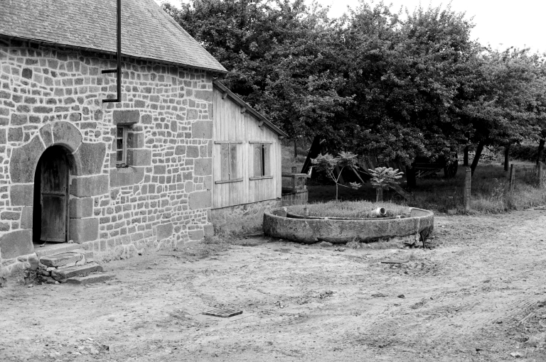Le premier logis de cette ferme est construit en moellon de granite. Les encadrements de baies sont en pierre de taille de granite dont les bords sont chanfreinés. La façade principale est percée de deux portes en plein cintre et d'une fenêtre qui avait autrefois une grille. Cette fenêtre présente des coussièges à l'intérieur permettant de s'asseoir et de profiter de la lumière du jour. Les bâtiments de dépendances présentent de nombreuses pierres de remploi. La ferme se compose également d'un fournil et d'un tour de pile. Cette ferme fut agrandie tout d'abord à la fin du 19e siècle, avec la construction d'un nouveau logis, et encore au milieu du 20e siècle, avec l'ajout d'un autre logis plus grand et construit en granite gris.