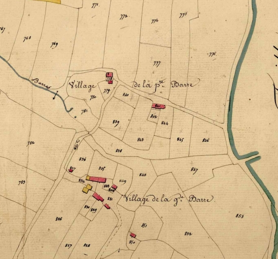L´écart de la Barre est situé au nord du village de Louvigné-du-Désert, il s'agit d'un écart peu étendu composé de la Petite Barre et de la Grande Barre. En 1833, lors de la levée du premier cadastre de la commune, la composition de cet écart était à peu près la même que la composition actuelle sans qu'aucune construction majeure ne semble avoir disparu. Les bâtiments qui le composent aujourd'hui sont figurés sur ce document, puisque leur construction semble remonter pour les plus anciens au 17e siècle. Certains bâtiments ont subi des remaniements au 19e siècle, puis à nouveau au 20e siècle. Cependant, un bâtiment qui présente les caractéristiques d'un logis noble, salle au rez-de-chaussée et chambre à l'étage, présente encore quelques éléments remarquables du 17e siècle : qualité de l'appareil en façade principale sud, ainsi que celui des ouvertures, corniche en pierre, décor des cheminées, fenêtre à coussièges.