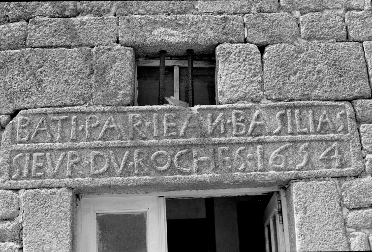 Le logis noble du Rocher Boudet a toutes les caractéristiques du manoir (dimensions du bâtiment, chambre à l'étage desservit par un escalier à vis intérieur) cependant, il n'est pas cité comme tel dans les documents anciens. Ce logis est élevé en moyen appareil régulier de granite et sa façade principale est percée d'une porte centrale et de grandes baies rectangulaires. Le linteau de la porte est gravé de l'inscription suivante : BATI PAR JEAN BASILIAS / SIEUR DU ROCHES 1654. On trouve également une pierre gravée du monogramme du Christ IHS. Le bâtiment est couvert d'un toit à longs en pans en ardoise et sa pente est brisée par un coyau. A la base du toit, se trouve une corniche en bois. Sur la façade ouest, se trouvait un escalier à vis pris dans l'épaisseur du mur et permettant la distribution intérieure. Cette maison noble fut transformée en ferme et on ajouta des bâtiments de dépendances : étable, grange, four, puits. L'alignement qui a disparu était composé de deux logis. La maçonnerie présentait un petit appareillage régulier de granite, les pierres de taille étant réservées aux encadrements de baies et aux chaînages d'angle. Les baies étaient chanfreinées et certaines présentaient un décor très soigné : une porte en plein cintre et une porte avec accolade au niveau du linteau, une fenêtre avec un arc à accolade. Chaque logis avait un escalier à vis en granite et un des logis avait une fenêtre à coussièges.