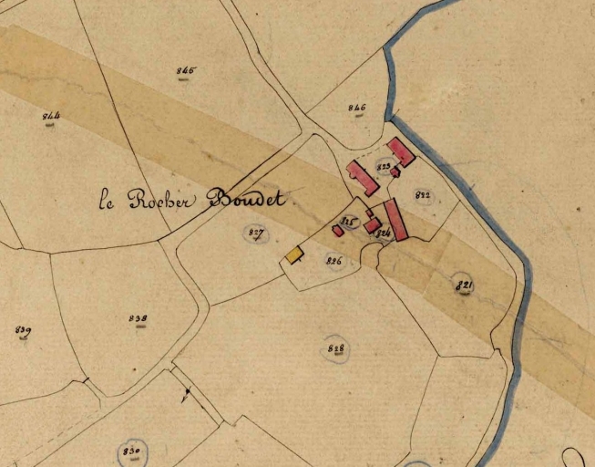 L´écart du Rocher Boudet est situé au nord-ouest du village de Louvigné-du-Désert, il s'agit d'un écart peu étendu mais composé de plusieurs bâtiments très intéressants sur le plan architectural. En 1833, lors de la levée du premier cadastre de la commune, la composition de cet écart était à peu près la même que la composition actuelle, cependant un alignement de bâtiments datant peut-être du 16e siècle a aujourd'hui disparu. Des photographies prises dans les années 1970 permettent toutefois de l'étudier, ainsi le décor soigné des baies et des cheminées, la présence de linteaux à accolade et de fenêtres à coussièges confirment la datation du 16e siècle. Aujourd'hui les bâtiments qui le composent sont figurés sur ce document, puisque leur construction remonte pour les plus anciens au milieu du 17 siècle, en effet le logis noble porte la date de 1654. Le site du Rocher Boudet se caractérise également par la présence d'une croix de granite datée 1664.