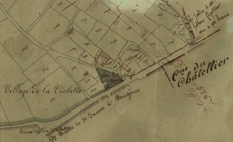 Cet écart présente la particularité de se situer sur trois communes différentes : Le Châtellier, Poilley et Villamée. La tradition orale rapporte que cet écart était un haut lieu protestant pendant les guerres de Religion de la fin du 16e siècle. D'autre part, les Chouans commandés par Picquet de Boisguy s‘y seraient battus en 1800. Une chapelle y existait, et une des maisons fut la maison du prêtre desservant la chapelle. Une école aurait même existé dans ce village. La Violette est située au sud du village de Poilley. Il s'agit d'un écart assez étendu et constitué d'un nombre conséquent de bâtiments agglomérés de part et d'autre de la route. En 1833, lors de la levée du premier cadastre de la commune, la composition de cet écart était à peu près la même que la composition actuelle, cependant quelques constructions très anciennes ont disparu. Les bâtiments qui le composent aujourd'hui sont figurés sur ce document, puisque leur construction semble remonter pour les plus anciens au début du 17e siècle. Certains bâtiments ont subi quelques remaniements en façade au cours du 20e siècle et sans doute dès le 19e siècle, cependant quelques éléments remarquables subsistent dans cet écart et présentent une architecture intéressante permettant de les dater du 17e siècle, notamment grâce à leur décor : portes en plein cintre à double rouleau, baies chanfreinées, fenêtres avec grille, appuis saillants, bel appareillage en pierre de taille, toitures à forte pente et pignons débordants. L'écart possède également une croix de granite.