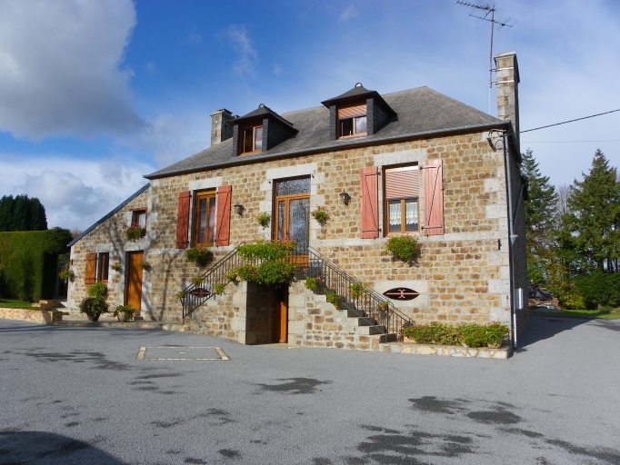 Les fermes peuvent être divisées en deux types principaux. On trouve tout d'abord des constructions avec le logis isolé des bâtiments agricoles et ensuite des bâtiments au plan allongé, présentant les différents éléments de la ferme dans un même alignement. Le premier type se rencontre dès le 16e ou 17e siècle, à La Bouteillère par exemple. Il s'agit de bâtiments aux volumes modestes, comptant une porte d'entrée, souvent sur rez-de-chaussée surélevé, une fenêtre de petite taille au rez-de-chaussée ainsi qu'une gerbière au niveau du grenier. Le second type existe également à cette époque, on le retrouve notamment à La Bigotière ou à La Petite Retardière. A la cellule de base, on a ajouté de manière contigüe une nouvelle cellule, si bien que dans le même bâtiment, on compte deux celllules familiales. La façade est alors agrémentée d'une nouvelle porte d'entrée. Une variante existe, par le remplacement de la seconde cellule familiale par une partie utilitaire qui peut être un cellier ou bien une petite étable. Dans les deux cas, on retrouve des éléments en commun, en particulier au niveau des décors. Ces derniers apparaissent essentiellement au niveau des ouvertures, des encadrements pour être plus précis. Les piédroits des portes et fenêtres sont moulurés ou chanfreinés, souvent en bisot ; les linteaux sont ouvragés, portent une accolade sculptée, ou sont même délardés, en anse de panier ou en accolade. Les appuis de fenêtres, souvent saillants, portent également des décors sculptés. La façade principale fait l'objet d'un traitement particulier dans sa mise en oeuvre. La pierre de taille, de grand appareil, remplace souvent le moellon, ou lorsqu'il sert à la construction, sa mise en oeuvre est soignée, assisée. Le siècle suivant voit surtout le developpement des logis isolés. Les volumes augmentent notablement, en particulier par l'adjonction quasi systématique d'un véritable étage, comme à La Grésillère. On observe également une recherche d'harmonie dans la façade, les premières travées de fenêtres apparaissent et certaines façades sont mêmes ordonnancées. De plus, on trouve de plus en plus régulièrement un équilibre dans le positionnement et le gabarit des ouvertures. A l'inverse du siècle précédent, les linteaux sont disposés, alignés, à un même niveau et la largeur des portes et fenêtres tend à s'harmoniser, on observe donc des constructions élevées avec plus de rigueur. La pierre de taille est encore utilisée en façade principale. A partir de la seconde moitié du 19e siècle, et ce jusqu'à la première moitié du 20e siècle, c'est la forme allongée qui se développe le plus. Le logis est intégré au centre de l'alignement, il compte une ou deux portes d'entrée et des fenêtres au rez-de-chaussée, formant des travées avec les fenêtres de l'étage. Il est flanqué d'une grange, d'un hangar et/ou d'une étable, identifiables par la taille des ouvertures. La taille des percements s'adapte aux nouvelles donnes de la mécanisation de l'agriculture. Les portes charretières deviennent parfois très imposantes, on les retrouvent tant en façade principale que sur les murs pignons. Les étables quant à elles sont dotées de petites ouvertures rectangulaires, plus larges que hautes. Un avant-toit est également parfois installé sur un des deux murs pignons et protège ainsi l'ouverture de la grange. On trouve ces exemples au Champ Potier ou à l'Hermitage. La pierre de taille n'est dès lors plus utilisée que pour les encadrements et les chaînes d'angle. La taille des pierres est standardisée et le granite utilisé, de couleur gris/bleu, participe au décor puisque le moellon de la maçonnerie est en granite beige.