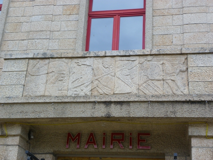 L'actuel Hôtel de Ville a été construit en 1957, en lieu et place de l´ancienne Halle-Mairie. Cette dernière avait elle même été reconstruite au milieu du 19e siècle à l'emplacement de halles encore plus anciennes. Une expertise menée en 1818 par le maire de Mellé dans le cadre d'un contentieux entre le propriétaire, le seigneur de Poilley, et la municipalité, nous offre la description suivante du bâtiment : " La halle de Saint-Georges se compose de deux ailes dont l´une se prolonge vers le midi et l´autre longe la rue principale. La première est soutenue par douze piliers en pierre dont les intervalles sont maçonnés à la hauteur de 325 mm (32,5 cm), ayant en longueur 17,55 mètres sur 6,5 mètres. La Charpente se forme de six liaisons sur entraits, sablières doubles, deux filières et un poinçon à simples liens, le tout sans plancher, nous avons comptés 72 chevrons sciés. La couverture sur lattes en rondin et de chaumes. (...) La seconde aile est supportée par huit piliers construits de la même dimension que ceux de la première, dont quatre annoncent ruine prochaine. Pignon en pierre au levant jusqu´à l´arras (?) et aiguille en terre qui forment liaison. Quatre liaisons composent la charpente, lesquelles sont sur entraits. Nous avons compté 49 chevrons sciés, couverture en paille sur latte de rondin." A partir de 1840, les halles sont "reconstruites" (mais quels furent les travaux exacts ?) par M. Le Duc, entrepreneur à Louvigné-du Désert. Le montant total des travaux s'élevera à 15530,05 francs.