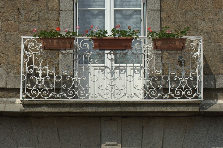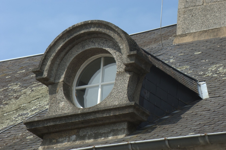 Cette ancienne pharmacie offre sa façade principale sur la place de la Mairie. Elle compte un étage et des combles à surcroît. Le commerce occupait tout le rez-de-chaussée et le logement l´étage. Le rez-de-chaussée est marqué par la devanture du commerce en granit, avec linteau à arc segmentaire. Cet élément central est flanqué de deux portes, dont une sert d´accès au logement et l´autre à la réserve. Ces ouvertures forment des travées avec les fenêtres de l´étage, la lucarne et les oeils-de-boeuf de la toiture. La porte-fenêtre centrale de l´étage, quant à elle, est dotée d´un balcon en granit et garde-corps en fonte. Le décor apparaît également sous la forme de bandeaux de maçonnerie verticaux et horizontaux.