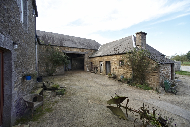 L´ensemble est composé d´un logis central et de deux éléments en retours d´équerre sur la façade postérieure, donnant un plan en U à la ferme. Elle apparaît comme une forme plus aboutie de la ferme du Grand Couvelou construite en 1857. Le logis est clairement différencié des bâtiments agricoles par un traitement particulier et une allure de maison de ville. Il compte un étage carré, une maçonnerie assisée en pierre de taille, et toiture à croupes couverte d´ardoises. La façade principale est ouverte au sud, elle est percée de trois travées de fenêtres, et d'une lucarne à fronton semi circulaire et épi qui couronne la travée centrale. La porte d´entrée est surmontée d´une niche avec croix sculptée tandis qu'un bandeau de granite marque la séparation entre les niveaux. Les ouvertures possèdent toutes un linteau délardé en anse de panier. L´aile occidentale est percée de deux fenêtres au sud. L´ensemble compte un grenier, percé d´une lucarne à fronton triangulaire. L´aile orientale, quant à elle, est percée d´une porte charretière, aujourd´hui vitrée, et d´une fenêtre. On retrouve la même lucarne que sur l´aile occidentale éclairant le grenier. La toiture est à deux pans et croupe, couverte d´ardoises, pour les deux éléments.
