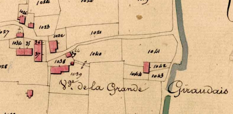 Les fermes de la Giraudais ont été construites à la même époque, au 16e ou au 17e siècle, puis agrandies à la fin du 19e siècle ou au début du 20e siècle. La partie orientale de la première maison a été détruite entre 1974 et aujourd'hui. Le cadastre de 1834 nous montre un plus grand nombre de bâtiments dans le village que ceux actuellement observables.