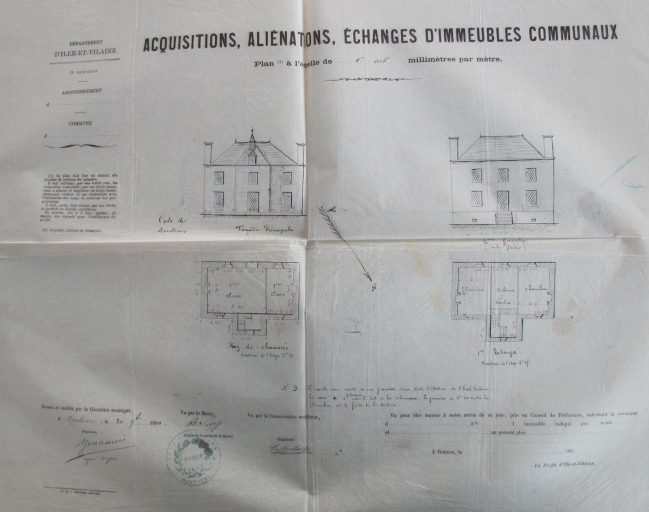 A. D. Ille-et-Vilaine. Série O : Administration et comptabilité communales. Edifices publics. Monuments et établissements publics. Montours. Presbytère (An VIII-1932). 20 192/13.
