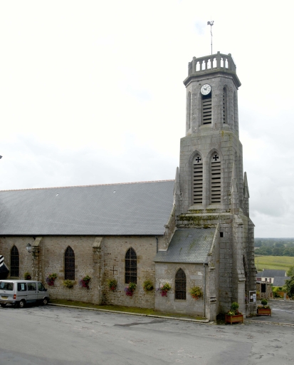 Cette église de style né-gothique présente un plan en croix latine ; elle est composée d'un vaisseau unique. L'ensemble de l'église est construit en moellon de granite alors que le clocher-porche est élevé en pierre de taille du même matériau. Le porche ouest, en arc brisé est accolé de deux "contreforts" surmontés de pinacles. Toutes les baies de l´édifice sont des baies en arc brisé. L'édifice possède un chevet plat auquel est accolée la sacristie. Les toitures sont couvertes d'ardoise. La nef et les bras du transept sont couverts de voûtes sur croisées d'ogives. L'intérieur est sobre et dépouillé ; les retables du choeur et des transepts sont réalisés en bois et témoignent d'un style néo-gothique.