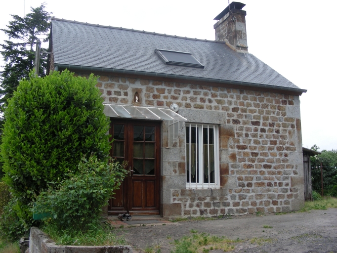Le bâtiment le plus remarquable de cet écart demeure celui qui se trouve au sud-ouest. Il est construit en moellon de granite, toutefois, la façade sud comporte de nombreux blocs de pierre de taille. Les chaînages d'angles et les encadrements de baies sont également réalisés en pierre de taille de granite. Le toit à longs pans est couvert d'ardoise. La façade, composée de trois travées, comporte plusieurs éléments notables, d'une part, deux dates portées à mi-hauteur de la travée centrale et d'autre part, trois trous de boulin en partie ouest. L'ancienne salle se trouve dans la partie est du rez-de-chaussée. Une extension a été réalisée à l'est au cours du 20e siècle, l'usage du moellon de granite bleu en témoigne.