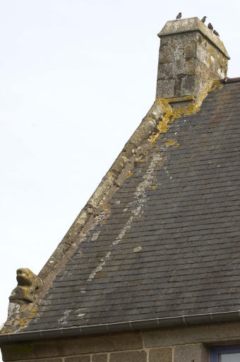 La maçonnerie de ce bâtiment est composée de moellon de granite. Les chaînages d'angles ainsi que les encadrements de baies sont réalisés en pierre de taille avec un grand soin. Certains encadrements de baies sont d'ailleurs chanfreinés et moulurés. C'est le cas de la porte centrale en plein cintre à doubles rouleaux, dont l'encadrement est mouluré d´un tore. Les chaînages d'angles sont doublés ; ils sont composés de deux rangs de pierre de taille disposés en quinconce. Certaines baies de la façade ouest ont été remaniées, c'est le cas d'une fenêtre centrale de l'étage qui a été murée ou des deux autres fenêtres de l'étage qui ont également été transformées. Le toit à longs pans est couvert d'ardoise, le pignon nord est débordant et orné de crossettes.
