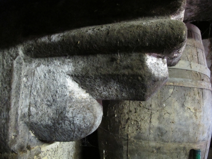 La maçonnerie de ce bâtiment est composée, à l'instar des autres constructions situées dans cet écart, de moellon de granite ; seuls les encadrements de baies et les chaînages d'angles sont réalisés en pierre de taille du même matériau. Le toit à forte pente et à longs pans est couvert d'ardoise et possède encore un léger coyau. Les baies de la façade sud ont été remaniées ; elles possèdent toutes aujourd'hui un encadrement quadrangulaire et des linteaux en bois pour certaines. La cheminée monumentale (2, 20 mètres de large et 1, 70 mètres de haut) située sur le mur est possède un décor exceptionnel. Le linteau est décoré en partie centrale d'un motif de quadrilobe formé par deux coeurs, l'un à l'endroit, l'autre à l'envers ; le linteau est surmonté d'une corniche. Les corbeaux possèdent une forme très particulière ; leur partie inférieure est très bombée. Sous les corbeaux, se trouvent à droite un visage humain et à gauche un prisme renversé se terminant par une boule. Un ancien vaisselier demeure sur le mur gouttereau nord.